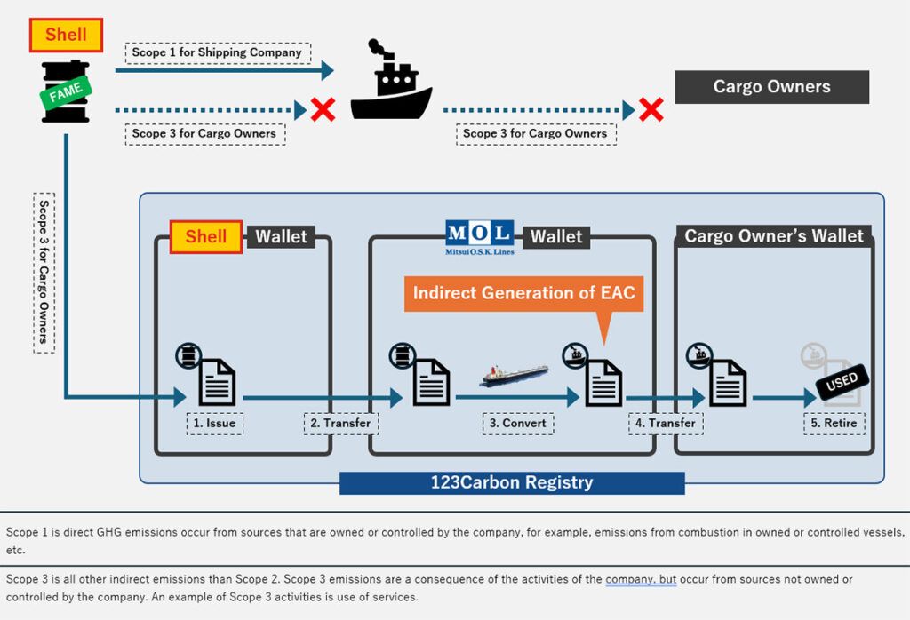 Mitsui O.S.K. Lines and Shell have launched a joint book and claim initiative using 123Carbon’s registry, which enables cargo owners to account for emissions reductions without directly using low-carbon fuel on their shipments.